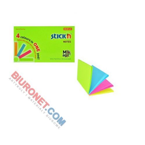 Karteczki samoprzylepne Skick'n Magic Pad 76x101 mm, 4 neono...