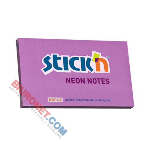 Karteczki samoprzylepne Stick'n 76x127 mm, neonowy bloczek 100 kartek fioletowy