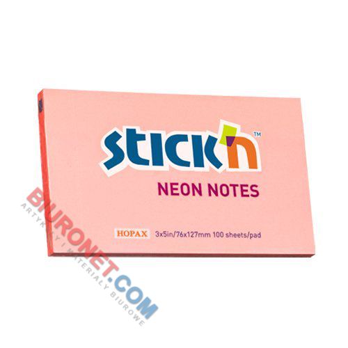 notes samoprzylepny Stick'n karteczki przylepne z mocnym klejem kolor ostry, odblaskowy         idealne do zostawiania wiadomości i robienia krótkich notatek ilość kartek: 100 kartek format: 127 x 76 mm kolor:  neonowy różowy  jednostka sprzedaży: 1 sztuka.