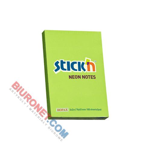 Karteczki samoprzylepne Stick'n 51x76 mm, neonowy bloczek 100 kartek zielony