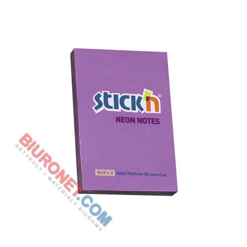Karteczki samoprzylepne Stick'n 51x76 mm, neonowy bloczek 100 kartek fioletowy