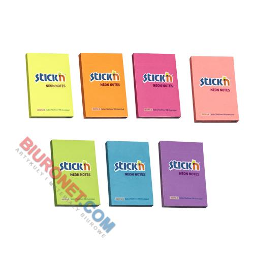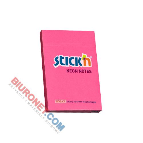Karteczki samoprzylepne Stick'n 51x76 mm, neonowy bloczek 100 kartek ciemnoróżowy
