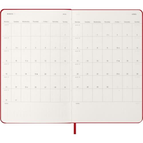 Kalendarz książkowy Moleskine 2026, format L 13x21 cm, rozkład tygodniowy, oprawa twarda czerwony