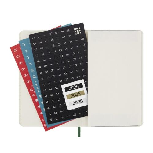 Kalendarz Moleskine oferuje również przydatne narzędzia, takie jak planowanie podróży czy strony na pomysły i cele. Do zestawu dołączono naklejki do personalizacji i wyróżnianie kluczowych dat. Dzięki możliwości otwierania pod kątem 180°, pisanie staje się niezwykle wygodne w każdych warunkach. To idealny wybór dla profesjonalistów, którzy cenią sobie zarówno precyzyjne planowanie, jak i przestrzeń na kreatywne myśli.
