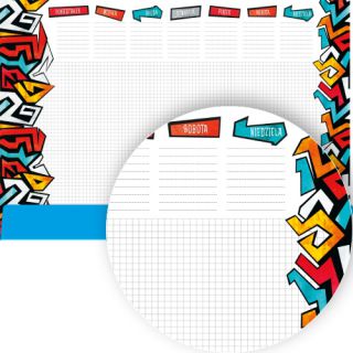 Posiada także tygodniowy plan zajęć, który pomoże Ci zaplanować spotkania, terminy i cele. Na dole znajduje się listwa zabezpieczająca podkład przed zniszczeniami i przesuwaniem się. Podkład jest wykonany z wysokiej jakości papieru o gramaturze 70g/m2, który jest przyjemny w dotyku. Jego wymiary to 35x50 cm, co pasuje do większości biurek.