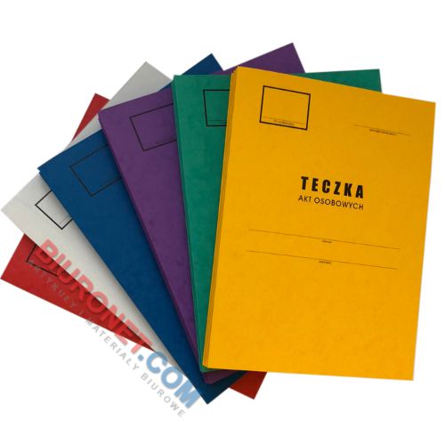 teczka kartonowa przeznaczona na akta osobowe wykonana z trwałego, kolorowego kartonu 390 g/m2 barwionego w masie, tzw. preszpanu teczka zawiera cztery karty A, B, C D i E do organizacji dokumentów każda przekładka wyposażona w mechanizm skoroszytowy, tzw. wąsy karty wykonane z białego kartonu 400 g/m2 okładka z nadrukowanym miejscem na opis zawartości format: A4 grzbiet: harmonijkowy produkt polski   kolor: niebieski  jednostka sprzedaży: 1 sztuka.