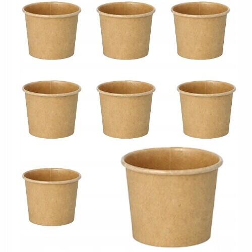 Kubki wykonane są z wytrzymałego papieru w naturalnym, brązowym kolorze, często kojarzonym z ekologicznym i minimalistycznym designem. Przeznaczone są do serwowania zarówno napojów gorących, jak i zimnych, dzięki czemu stanowią uniwersalny element wyposażenia. Papierowa konstrukcja zapewnia odpowiednią izolację termiczną, chroniąc dłonie przed wysoką temperaturą.