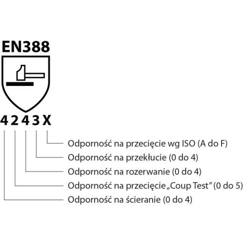 Te rękawice to produkt kategorii II, spełniający szereg rygorystycznych norm bezpieczeństwa, w tym EN 388 i EN 407, co świadczy o ich niezawodności i zgodności z europejskimi standardami. Elegancki, czarny kolor nadaje im profesjonalny wygląd. Komplet 12 par to praktyczne rozwiązanie dla przedsiębiorstw, które cenią sobie trwałość i wydajność w wyposażeniu ochronnym dla swoich pracowników.