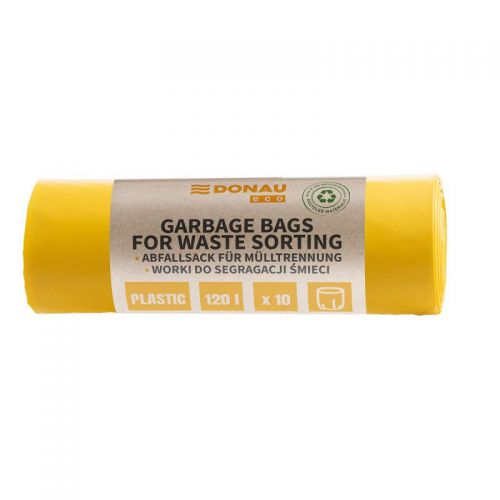 Worki na śmieci Donau Eco to doskonałe rozwiązanie do segregacji plastiku. Wykonane z niezwykle wytrzymałego i rozciągliwego materiału, są idealnie przystosowane do przechowywania i transportu odpadów plastikowych. Co ważne, są one w 100% wykonane z materiału pochodzącego z recyklingu (LDPE), co sprawia, że są one przyjazne dla środowiska. Posiadają certyfikaty Zielony Punkt oraz Blue Angel, co potwierdza ich zgodność z normami ekologicznymi. Dzięki dużej pojemności (120 litrów) oraz odpowiedniej grubości folii (35 μm), zapewniają one niezawodną ochronę środowiska. Zestaw zawiera 10 worków o kolorze żółtym, co ułatwia identyfikację przeznaczenia.