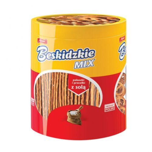 Tuba Beskidzka Mix to harmonijne połączenie tradycyjnych Beskidzkich Paluszków z solą i Precelków z solą. W jednym opakowaniu znajdziesz dwie smaczne przekąski, które zaspokoją Twoje podniebienie. Tuba jest wygodna w użyciu, a dołączona foremka sprawia, że podanie przekąsek jest jeszcze prostsze.